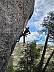 Nástup vlevé části stěny asi 4m vlevo od cesty Los Sobraos. Dole převislou stěnou po dírkách pak přes polici a mírně doprava stěnou po lepších chytech.