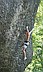 Nástup stejný jako Alter weg Risseinstieg vlevo od Showdown. Převislá cesta s těžkými přešahy.