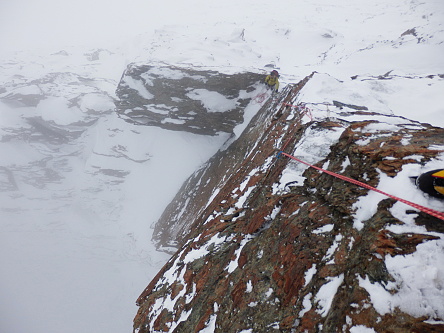 Hledání cesty ledovcem Verra,  zasypaným předchozím sněžením, nám ke konci zpestřuje mlha a vstup do bivaku Rossi e Volante je nakonec poslední akce dne. Zhoršující se počasí nás odradí od odpoledního plánovaného přechodu masivu Breithorn a večer s nadějí, že zítra bude líp, usínáme. Ráno je vcelku hezky a tak stoupáme na první čtyřku - Roccia Nera, pak následují Breithornzwillinge OstBreithorn Ost, za kterým míjíme možný sestup a jdeme dál, ve zhoršujícím se počasí, po skalnatém hřebeni. Více méně to je trojka s jedním těžším úsekem, lezení nám zpestřuje zasněžená skála, vítr a mlha. V těchto podmínkách dolezeme na Breithorn Zentral, z kterého pokračujeme na Breithorn West.