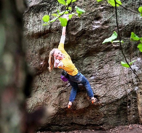 To víš, kluci a holky lezli pískovcový devitky, no a jen tak bokem dali bouldr 8a