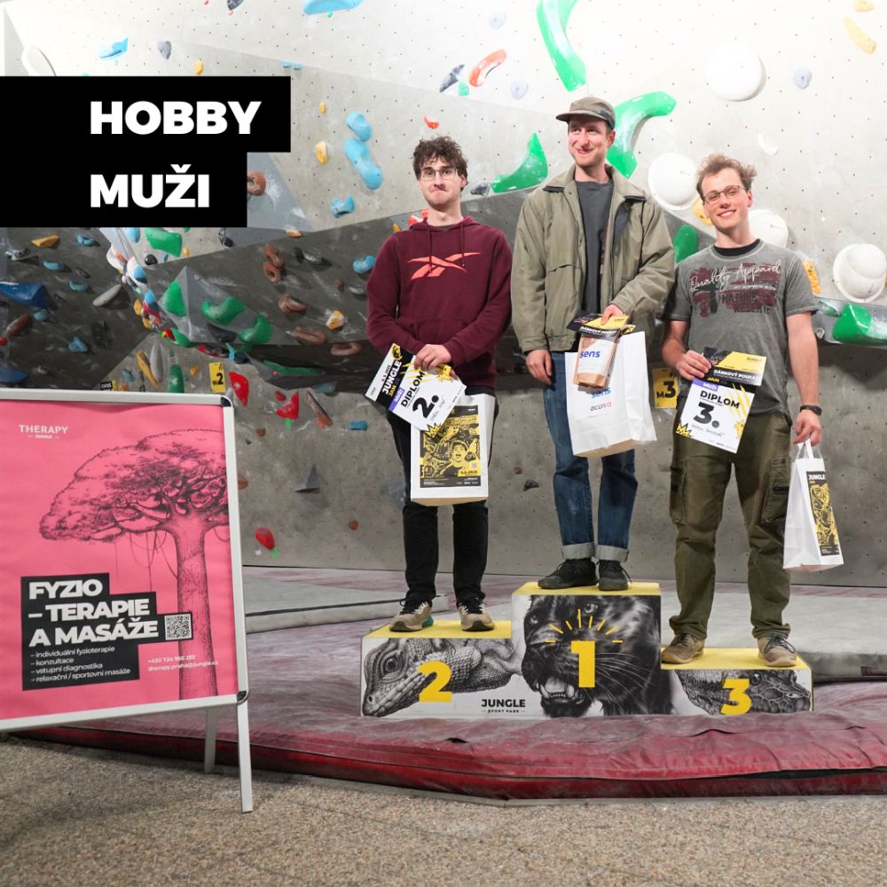 Na scéně se objevila nově upravená kategorie Hobby – a rovnou zapsala úspěch. Bez rozlišování pohlaví se lezli bouldery růžové, oranžové a zelené (po deseti kusech) – ať si každý zaleze do syta. Zpětná vazba? Jednoznačně palec nahoru. Takže za nás rozhodně krok správným směrem.