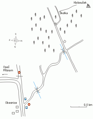 Myslím, že navigace ke Kloboučku není na Lezci moc zdařilá. Velká přehledná mapa ukazuje příjezd od Obecnice po 11811, pak ale naznačuje v rozporu se slovním popisem, že se obcí jede stále rovně a vyjede taky po 11811. Slovní popis se asi vztahuje na příjezd po 11811 - uprostřed obce se ale má zahnout doleva - na jih. Podrobné schéma se asi vztahuje na příjezd do Obecnice od Oseče - po 1185. V každé variantě se člověk dostane na jinou lesní cestu. Paradoxní je, že ke Kloboučku asi vedou všechny. Též jsou uvedeny špatně souřadnice - vrchol je správně, ale parkování ne. Snad tam chybí u vteřin celá čísla. Jinak lze využít skutečnosti, že kopec je v okolí nejvyšší a skály jsou u vrcholu. Půjdeme-li stále do kopce, tak to bude správně. Jen pozor - vrchol je dost placatý a skály - v úbočí vrcholu - jsou obrácené k východu. Při cestě ze západu je uvidíme až na poslední chvíli. V.V.