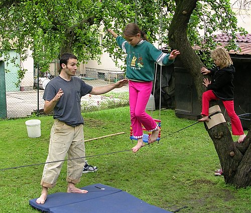 Jedno malé upozornění, hlavně pro kluky, buď lano níže než délka nohou a nebo se modlit a doufat, že v případě pádu neskončí napružené lano v rozkroku.