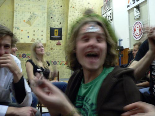 Následovala technická a občerstvovací pauza, kterou jsme vyplnili přednáškou z treku kolem Annapurny (Pólo díky), vyhlášením jednoho z vítězů divácké soutěže, úpravu stěny a doplněním prvních údajů z průběhu závodu na www.oupn.wz.cz . Taky bylo nutné zahnat včas finalistky do izolace.