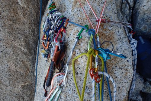 2 sady camalotov po veľkosť 4, jedna 5, 6, TCU-čka, čoky a 10 skôb.