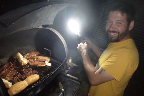 Vedie systémom špár, má 13 dĺžok (605 metrov nového lezenia) a v 14 dĺžke sa spája s Kanadskou cestou. Jej obťažnosť je M8, 7a+, C2. Prvé štyri dĺžky boli zaľadnené a tak ich liezli so zbraňami, ďalšie dĺžky boli špáry od prstových po širočiny. Cestu vyliezli alpským štýlom a bivakovali po 8 dĺžkach na malej polici. Druhý bivak dali na vrchole po 40 hodinách od nástupu. Asado je logickou línioui v peknej skale a podľa lezcov by mala ísť vyliezť aj voľne...