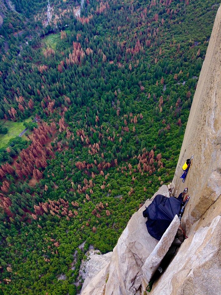 Prvý bivak, lepšie povedané nultý, sme mali na Sicle Ledge, kde sme vyžumarovali po fixoch neskoro poobede. Prvé štyri dĺžky sme vyliezli pred pár dňami a počkali, kým prejdú silné horúčavy. Druhý bivak bol na Dolt Tower. Krásna škára Stoveleg Crack bola ťažšia, ako som čakal. Ďalej sme liezli cez Jardinov traverz, kde nás zdržal zaseknutý batoh. Preto sme bivakovali jednu dĺžku pod Camp 4. Ďalší deň sme cez Great Roof doliezli do Camp 5, kde sme pre dážď a búrky bivakovali dva razy.