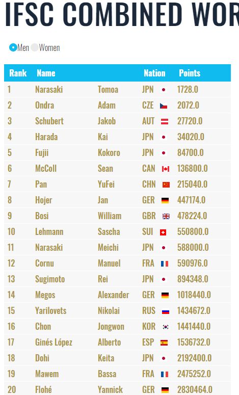 V Toulouse ve Francii (28. listopadu až 1. prosince) má totiž  podle nominačních pravidel startovat 20 mužů a 20 žen nejlepších v kombinovaném rankingu. Náš Adam Ondra je v kombinovaném rankingu na 2. příčce, tedy by ho nejasnosti ohledně startovní listiny ani japonská žaloba neměly ve startu ohrozit.