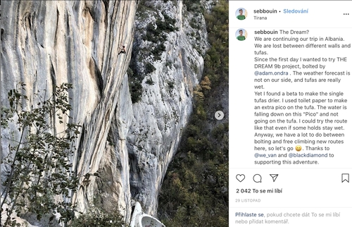 Francouzský lezec Seb Bouin během své cesty po Albánii přelezl v rozvíjející se oblasti Brar cestu The Dream, 9b.
