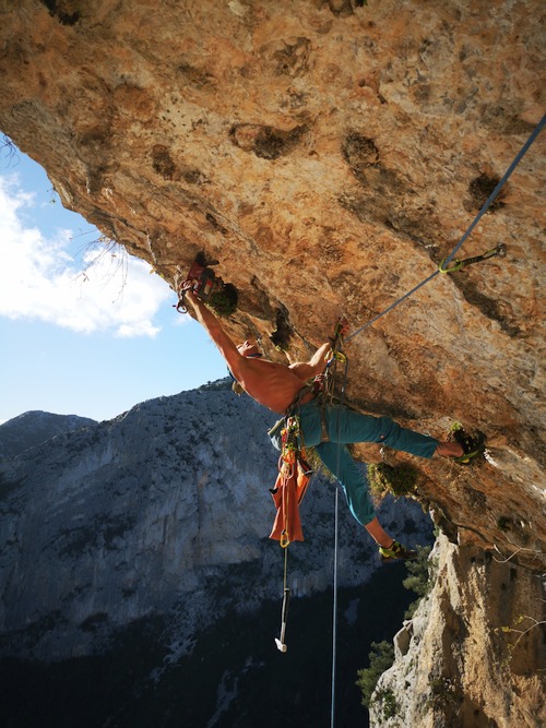 Jak se píše v článku, je soutěž o 1RP či OS;-) Nebylo to v mojich silách vlastně jakoukoliv délku skoro lízt RP po tom boltovaní. Vše je odhad dle mojich zkušeností, přeci jen jsem v téhle obtížnosti udělal mraky cest, ale uvidíme. Dle mě, nic těžšího na Sardínii teď asi není. Myslím multipitch. Hotel Supramonte, Mezogiorno di fuoco a další jsem lezl a tohle je za mě určitě těžší. Abych byl schopný tohle lízt, musel bych přestat vrtat a odpočinout si, ale když má člověk pár dní jen dovolené, to nejde:-)) Ale pro někoho to bude určitě giga výzva, teď tam je akorát kámoška a má 150m lan pod nástupem už. A leze až 8b+, tak třeba ona bude první;-)