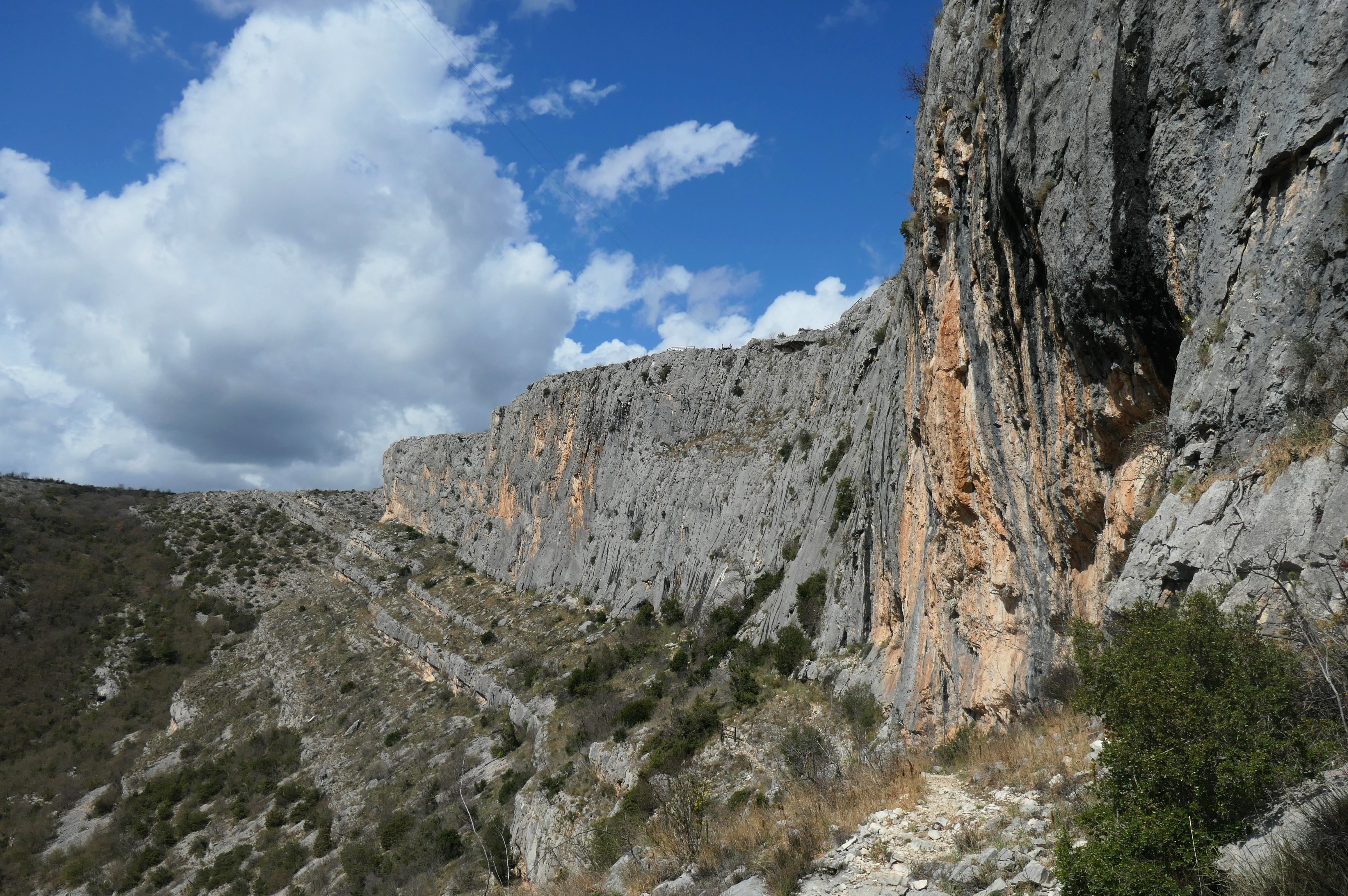 Jedná se o středomořský šedý vápenec. V převislých sektorech je oranžově okrový. Povrch je ostrý a zatím je minimálně oklouzaný.