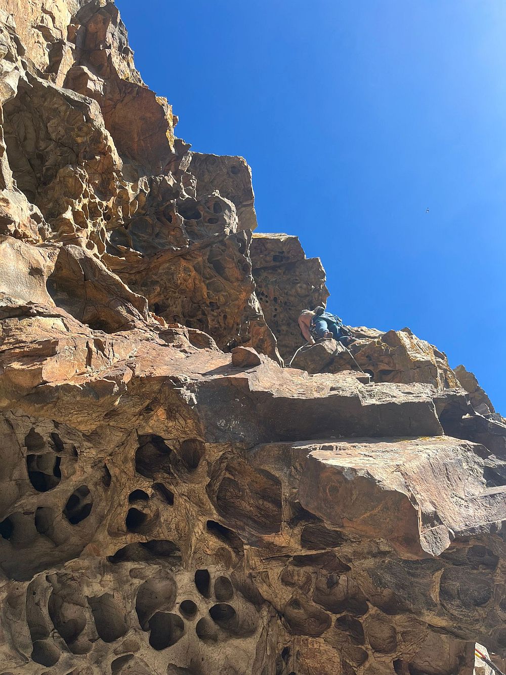 Poslední zcela nový sektor až se 7 délkovými cestami jsme otevřeli nad vesnicí VILLAGRANDE STRISAILLI. Žula, která je tak děrovaná, že jsme tu oblast i tak nazvali MURO DI BOLLE. Jsou tam i jednodélkové cesty. Po ničem podobném jsem nikdy na Sardínii nelezl. A konečně se i povedlo najít místo, kde se dají vrat lehké vicedelky 😄 Přístup do 20 minut od auta a vždy velmi pohodlné slanění převisama a max 2x slanění. Slunce v létě tam bude tak od 11..