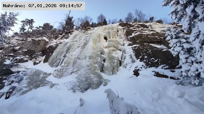 Přírodní ledopád v Labském dole v Krkonoších je vyledněn a od včerejška otevřen pro ledolezení.