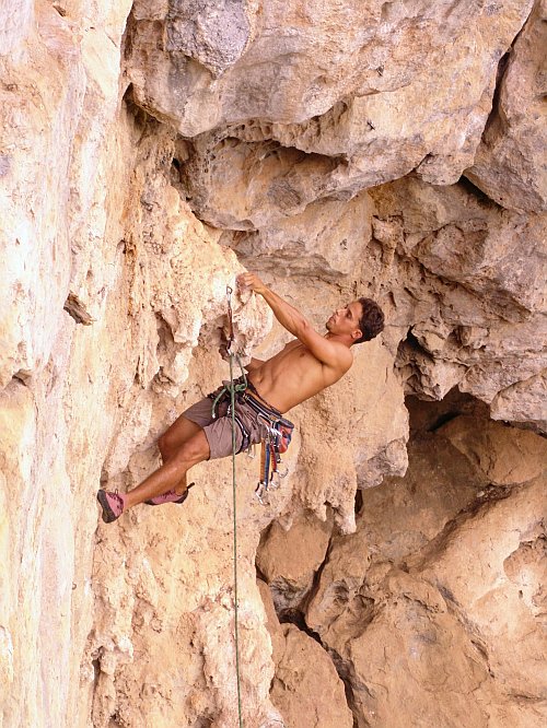 Alberto v jedné z místních rozlezových cest 6b na La Costanera