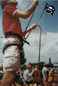 • Lano je vedeno pouze vratným bodem na vrcholu stěny, nejsou zapnuty body postupového jištění!!!