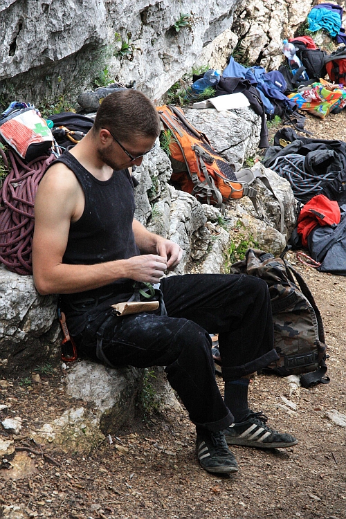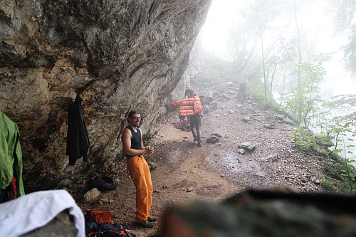 A je konec ... je konec první části výletu. Ruce padají až na zem. Prsty se rozmnožily na kousky. Je třeba se zacelit a využít takto k tomuto účelu plánovaný restday. Večer dáme poslední sprchu v kempu (v životě snad ne) a navonění až do dálky razíme za Lukou do městečka Kamnik. Stíháme to s prvními paprsky deště, které začínají probodávat vzduch. U Luky je báječně. Rodinná atmosféra, večerní pifko v místních malých Rígráčích (venkovní zahrádka) a vydařený spánek přelévající den do dne dalšího. Restday se nese v duchu klidů, mírů a plánování. Žene se nebeská průtrž a je nutno tomu ujet. Slovinsko bude pod vodou a přestože oblasti Misja Pec a Osp by asi byly jistým východiskem, z důvodů výkonnostních míříme tak trochu jinam. Tak trochu do Rakouska. Tak trochu k Vídni. Tak trochu do Adlitzgräbenu. Někteří jsme tam poprvé a někteří jsme tam potřetí. Nikdo tam není podruhé a to je s podivem. Norové sice hlásí, že spadne za den padesátimilimetrová deska bazénové vody, ale Danny zase hlásí, že cesty „budou a pudou“. A kdo je víc, nějací Skandinávci, nebo krajan největší? Pouze řečnická. Dannyho převisy skýtají dost suchého vzduchu a obecně suchého prostoru a cesty rostou jako houby po dešti ... suchohřiby zejména. Lehčí i těžší klouzci se najdou a tím pádem každý houbař se baví a raduje z na/vylezených úlovků. Večerní smaženice nemá chybu. Život je krásný...och, ach.