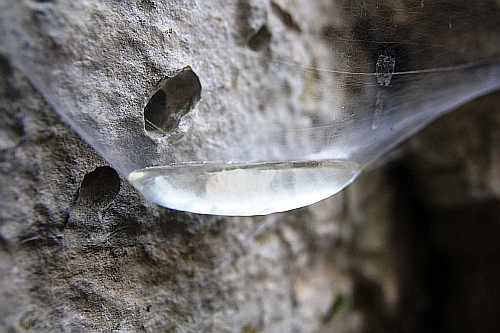 Vodní lázeň šikovného pavouka, aneb síť je hustější než voda a fyzika je na krovkách.