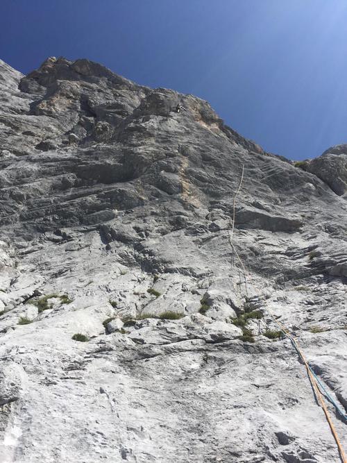 4. Kdo má lezení rád, bude nadšen a spokojen. Ale kdo se častěji pohybuje v alpských stěnách, ví, že občas musíte i zapojit hlavu a nejen sílu. Potom si bude užívat krásné variabilní lezení, jižní stěnu, slušné jištění a dojištění.